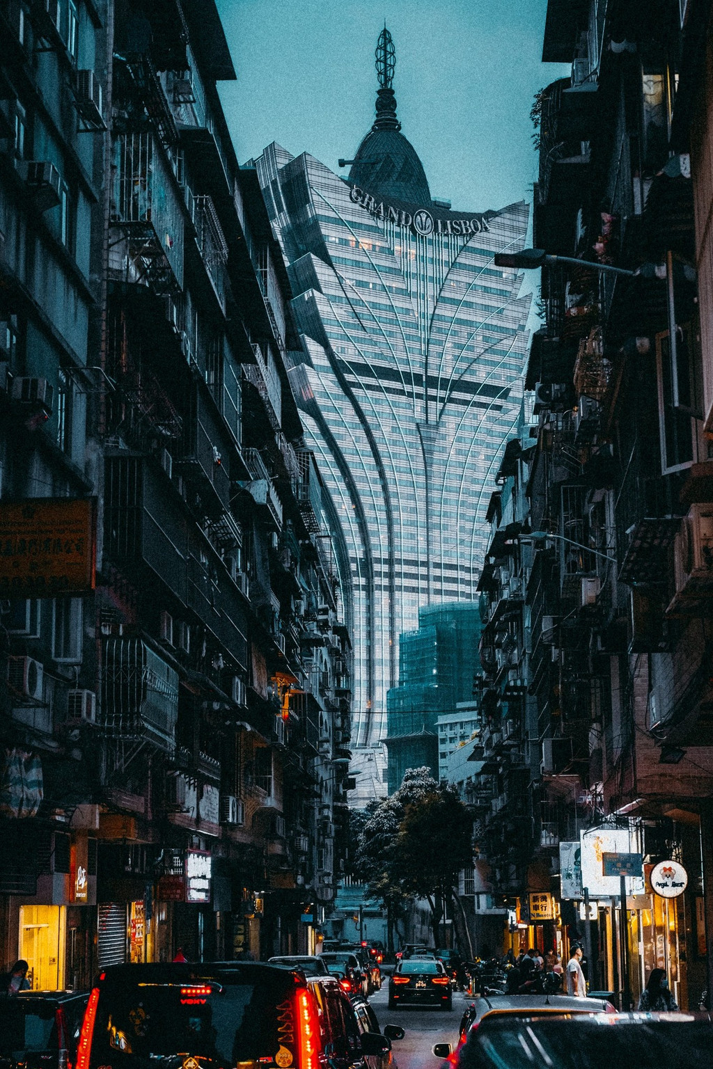 夜幕降临的 澳门 老街