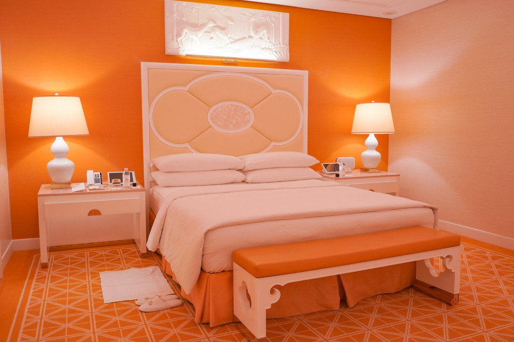 永利皇宫有1706间客房,而我这次入住的就是他们家爱马仕黄色主题的湖景套房,房间足足有100多平米,据说永利皇宫最小的房型也有60多平米,比很多其他酒店的套房都大。