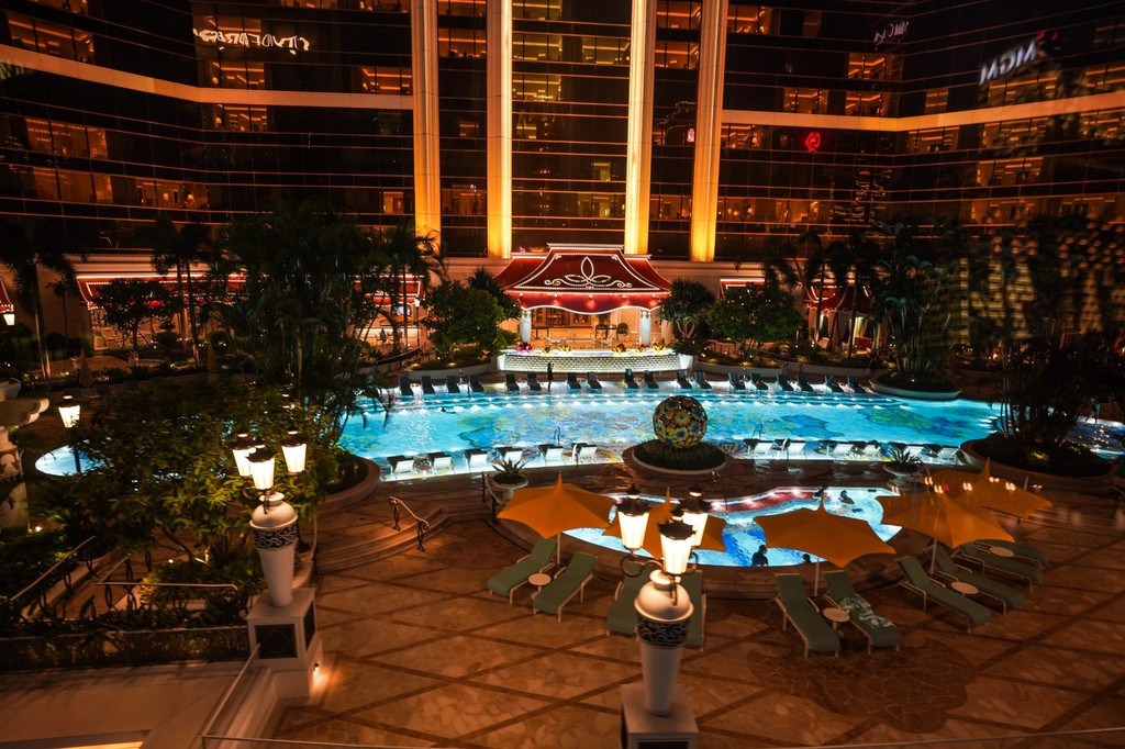 晚上回来的时候,在缆车上就发现永利皇宫的泳池好漂亮。