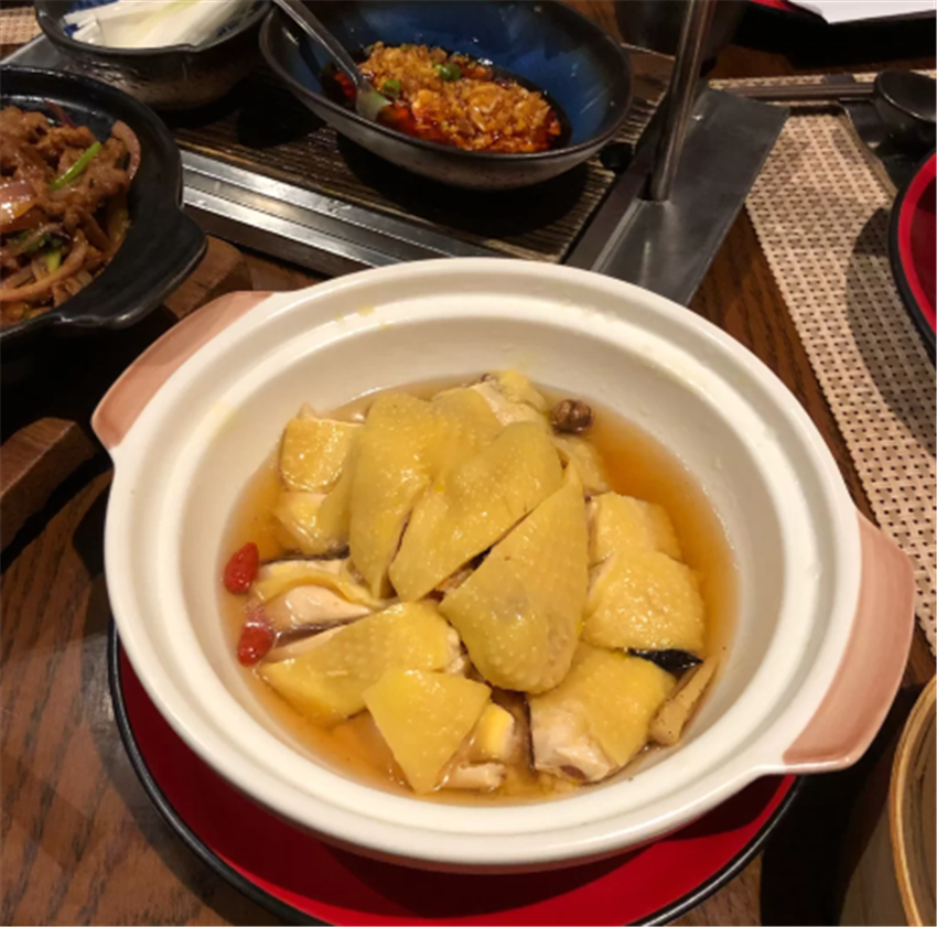 还有小笼包,皮薄汤多,刚上桌的时候有点烫,吃的时候要多注意一点;石库门醉鸡也是一道吃不腻的菜,这是道凉菜,鸡肉很嫩,有淡淡的酒香。