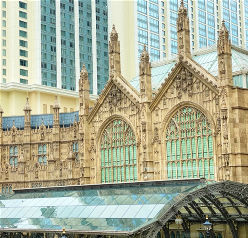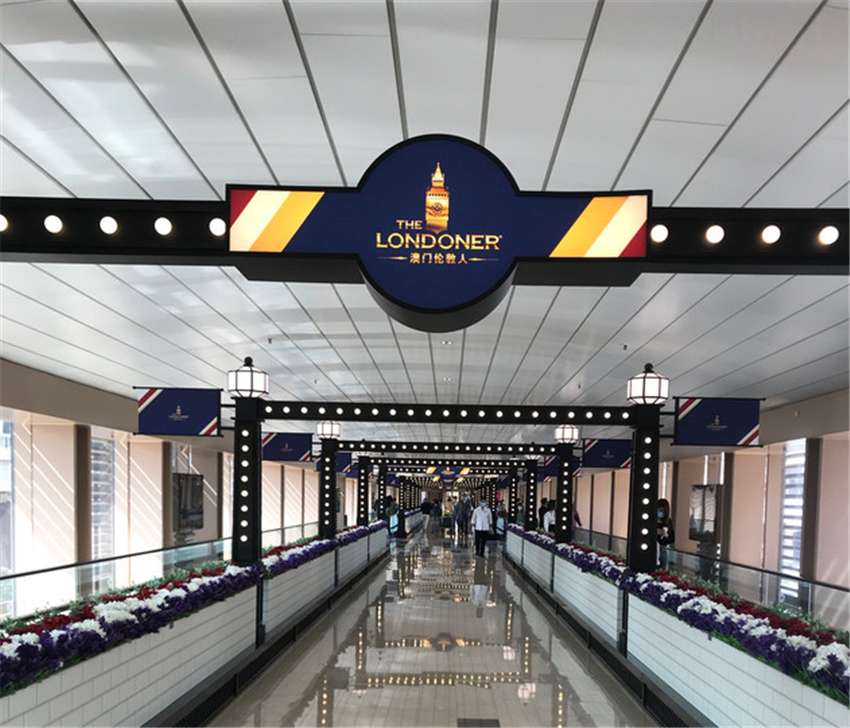 当我还沉浸在威尼斯人的意式小清晰和巴黎人酒店的法式浪漫而无法自拔时,朋友说要带我去见识一下高贵的英国风酒店,原来她说的是新开业的伦敦人酒店。我们从空中通道步行过去的,一路上看到很多别样的景点,有伦敦人地铁、伦敦人桥,还有户外的电话亭、大笨钟、英国风的邮筒等等。
