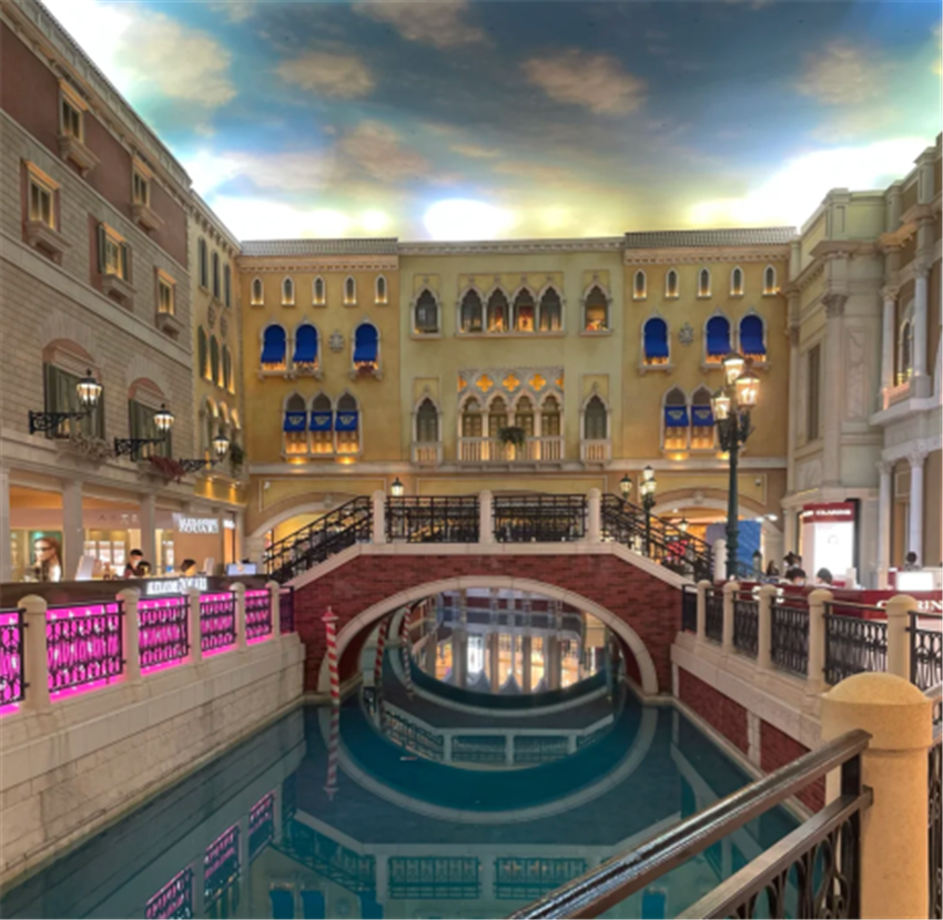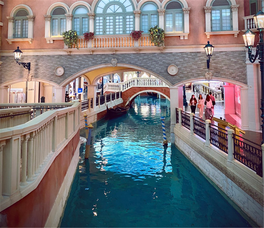 没有人会不爱上大运河购物中心的水城景色,这里的一切都让人感觉身在威尼斯。意大利式建筑的屋檐造型独特,拍照特别好看。购物商场里有3条穿梭的运河,这里的贡多拉船旅也是必体验的经典项目。