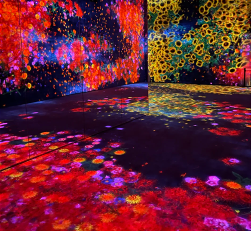 从踏进teamLab超自然空间展馆的那一刻起,我就意识到自己来到了一个不寻常的时空。在这里,你的周围会发生很多奇妙的事情,例如身处花海之中,你的一静一动都会影响到花朵的绽放与凋零。