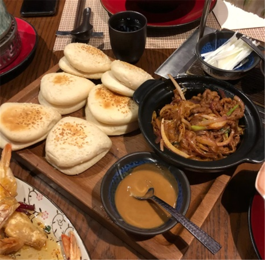 炒烤羊肉夹馍和京城酥皮虾,夹馍足足有六个,份量超大;酥皮虾炸的很脆,是酸甜口味的,外酥里嫩。