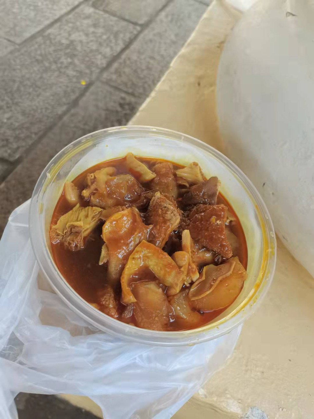 官也街很短,是真的短!吃了一个荣记牛杂(旁边就有换外汇的),牛三宝+什么面+很多辣117块,结果把我们两人直接吃撑,汗流浃背,如果是一个人肯定吃不下。