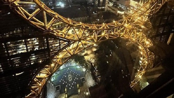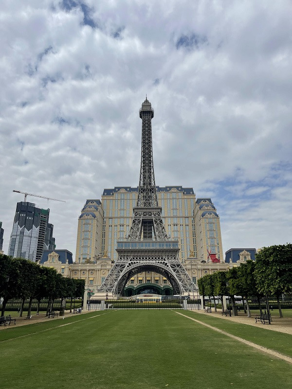 巴黎人酒店门口的铁塔是按比例复刻的巴黎铁塔,铁塔的7楼和37楼都设有观景平台,也可以付费进入,俯瞰整个氹仔的景色。
