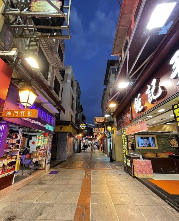 街只有150米,澳门最出名的葡挞、猪扒包以及各种饼店这里都有,可以边走边吃。