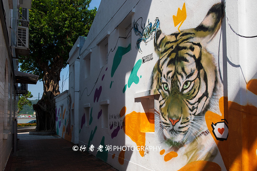 路环岛有海、有村、有古庙,还有吃喝,都在圣方济各圣堂一带的海边。下了巴士,车站就是恩尼斯总统前地,纪念澳门的葡萄牙总统恩尼斯首次访问澳门而命名。旅客们下车后都去寻找安德鲁饼店,品尝始祖级的澳门葡式蛋挞,而我则更痴迷于寻访路环岛的庙宇等古迹,拍摄街道上老房子墙壁上的艺术涂鸦。