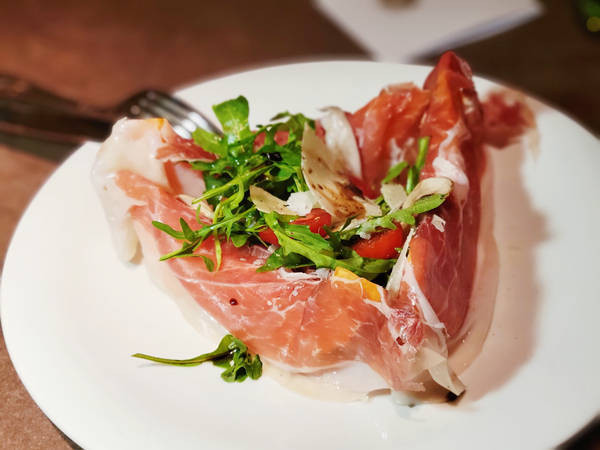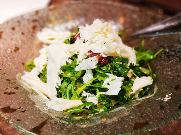 苏苏超爱吃火箭菜(也称为芝麻菜)沙律,看着服务员在我们面前制作沙律,感觉特别新鲜,还有即切的芝士,看着时口水在心中一直流.....尝起来口感脆脆的火箭菜带点独有香气,还有橄榄油和柠檬汁等调味料搭配,十分开胃,可以为之后的美食作准备。