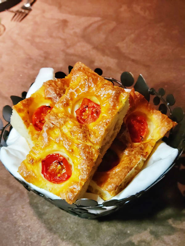 餐厅自家制的面包,口感松软,香气四溢,用橄榄油和意大利黑醋同吃,滋味满腔。我们还在等两个朋友,一边小酌一边吃面包,不知不觉,我俩将整盆吃掉了。