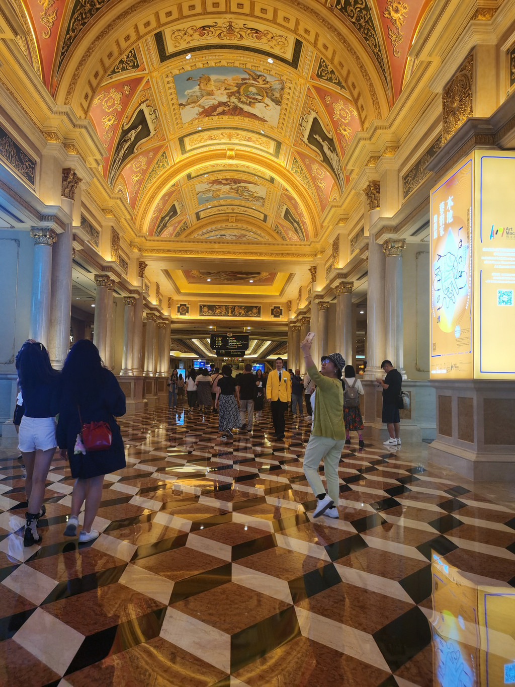 官也街离威尼斯人很近导航走过一个长长的绿色走廊就到了。