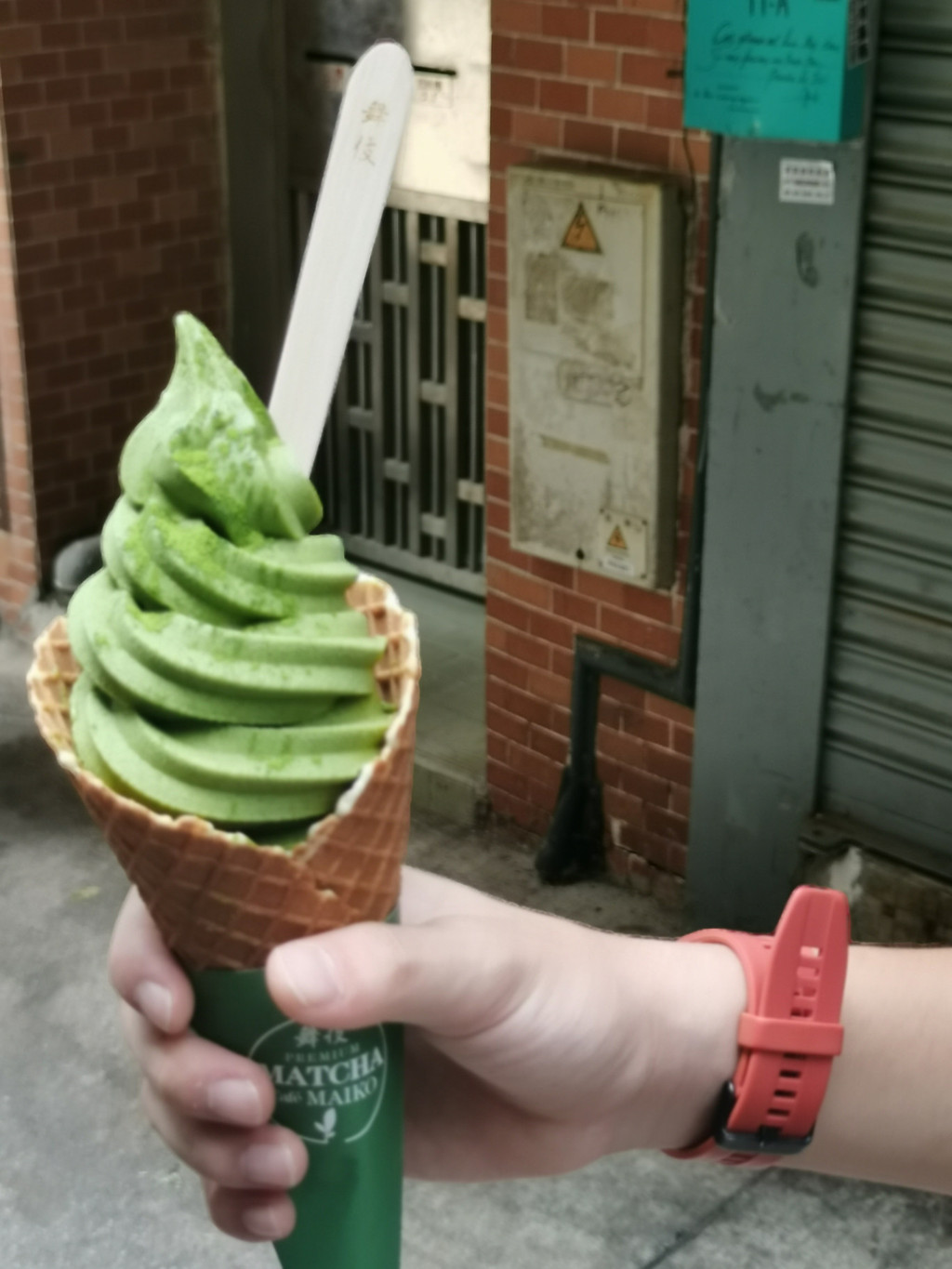 好吃的抹茶味,真的很好吃,浓浓的抹茶味、不会苦,甜度适中,冰淇淋到最有点糯糯软软的,个头也大,比麦当劳的奥利奥麦旋风’还大一点,位置藏在大三巴主路旁的小巷子里,这家店前面还有个中古包店也不错。