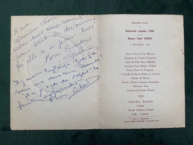 法餐的隆重,其实是由内而外的。我几年前收了一张1949年9月3日的法国婚宴菜单,甜美简单的酒会食物,博若莱开头,咖啡结尾。好像是明天,又好像在昨天。