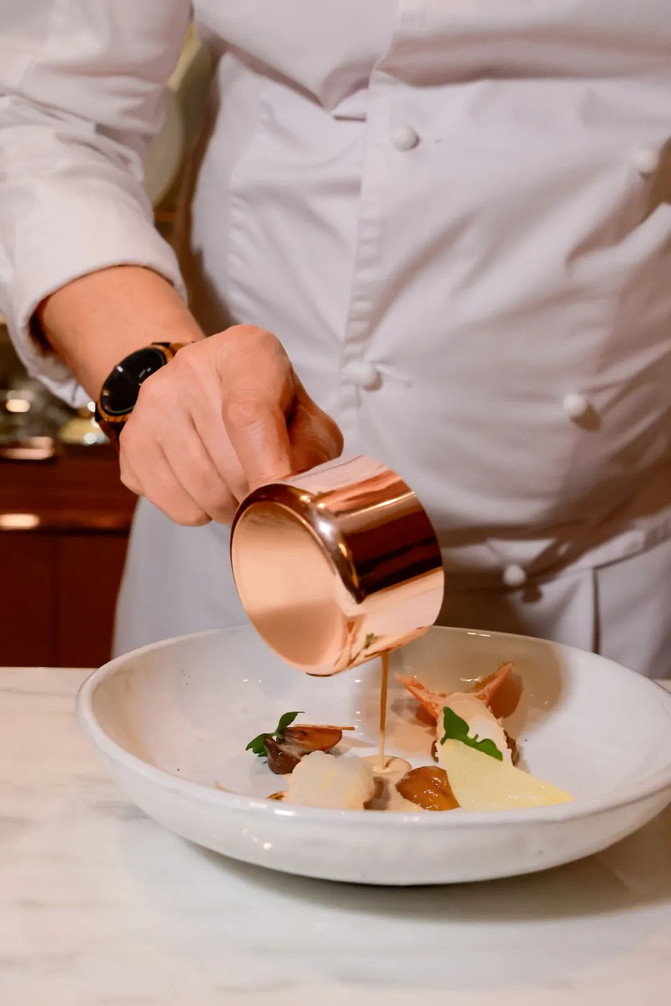 对于这次联弹,两位主厨共同的构思都是注重应季性,汇集他们在法国现代美食方面的专业知识,选择来自法国和当地的季节性珍品。当然还有一些各自餐厅的经典菜。