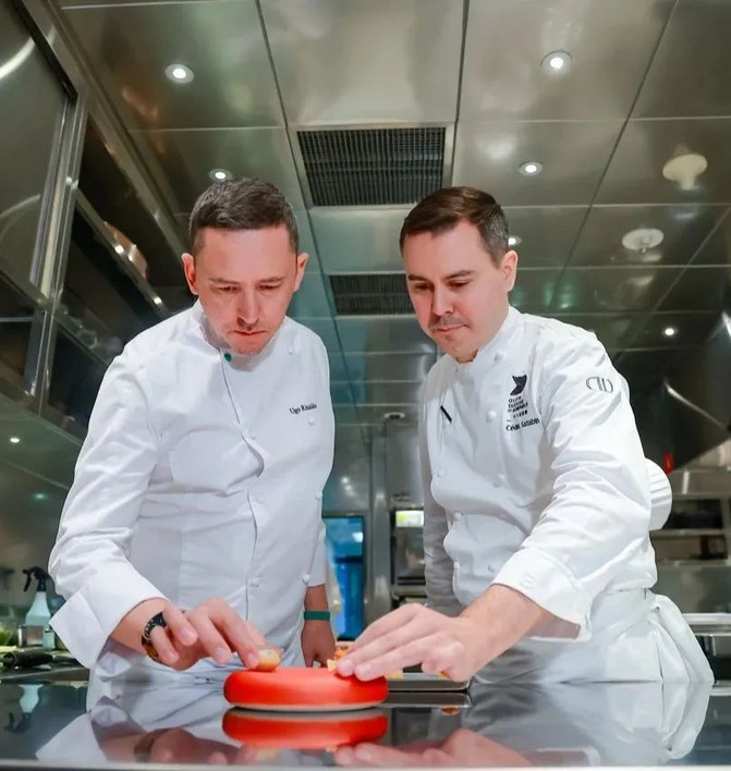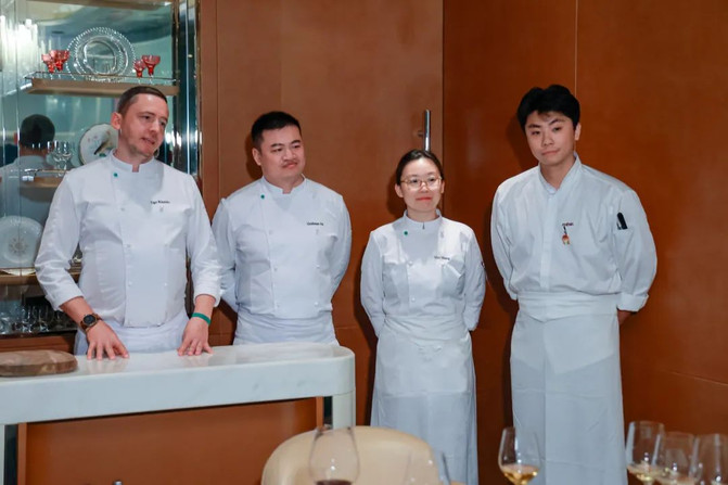 虽然两个团队只在一起工作了几天,却配合默契。Ugo在摩纳哥的Le Louis XV工作过,正巧是在Cedric之前几年在摩纳哥为杜卡斯先生工作,而几年后Cedric也在摩纳哥工作,所以这就是为什么他们开始建立联系。两位主厨都在澳门工作时,他们就经常见面,散步时会一起讨论厨艺。