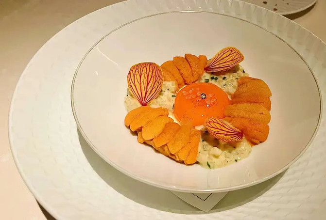 对了,这里的一道油封蛋黄与海胆的魅力,已被多娇的风铃花瓣加持过,桌桌必点。