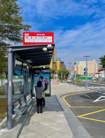 内地游客过了拱北口岸之后,沿着导视就可以找到“关闸广场”巴士站,我们乘坐“3A”前往“澳门科学馆”。