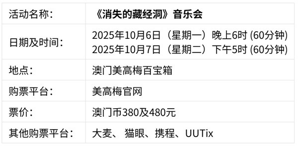 作为本次大展的重要延伸,博物馆特别邀请联合国教科文组织全球亲善大使,国际知名作曲家、指挥家谭盾,带来其潜心创作的《消失的藏经洞》音乐会。音乐会将于10月6日至7日在澳门美高梅"百宝箱"剧场举行,这不仅是一场视听盛宴,更是一次对千年文明的深情叩问与非凡重建,与"丝路"大展形成深度呼应。