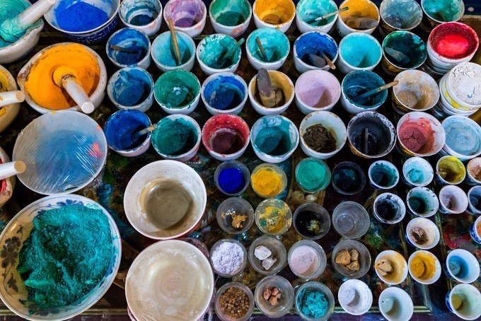 他9岁开始跟随村子里的老艺人学习藏式墙面绘画,一边为他们打杂,一边上些简单颜色。比如家具、窗子、大门等等。15岁初中毕业独自求学藏区黄南州、海东地区等地,学习唐卡绘画技艺。这一去就是八年。这八年里,三郎罗尔伍学习了不同的唐卡绘画风格,也经历了求学的酸甜苦辣。