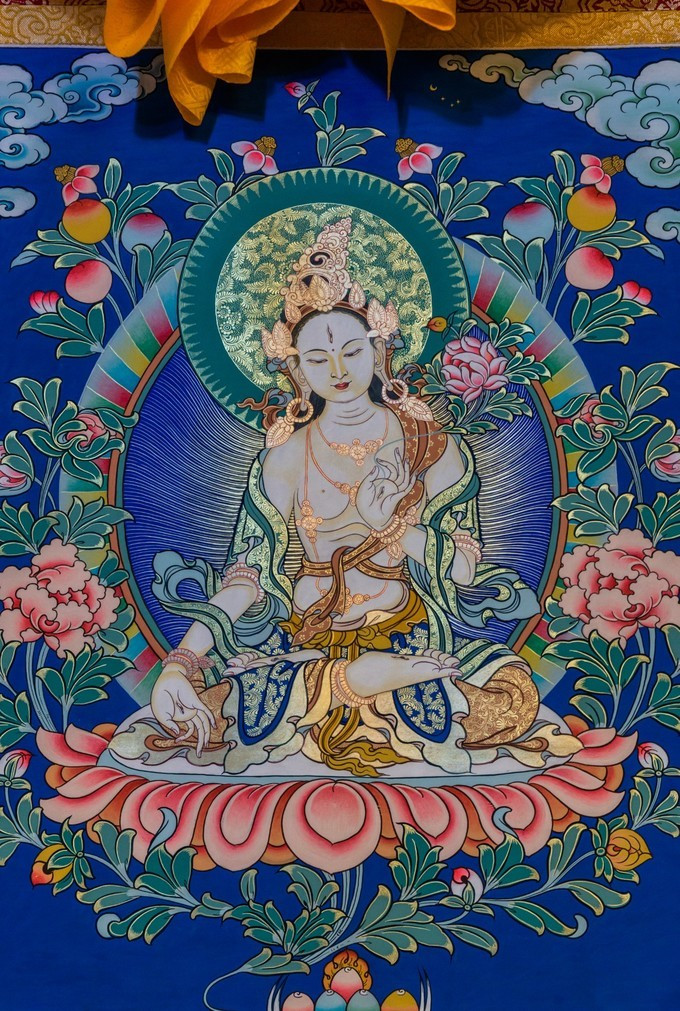 在唐卡绘画工作室,向三郎罗尔伍老师询问了许多关于唐卡绘画的问题,并且亲身体验了一次绘制唐卡的过程。一幅成品唐卡,需要绘制几个月甚至一年的时间,每一件作品都会汇聚了非遗传承人的智慧匠心和心血。