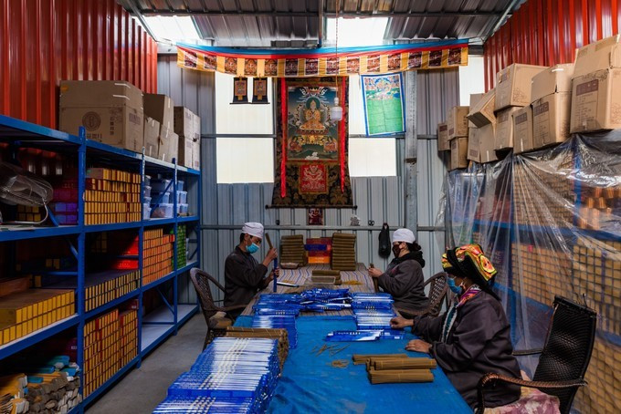 他建立了自已的电商团队,产品远销海内外,企业年产值超过1000万,成为马尔康周边几个区县最大的藏香生产加工企业。目前公司线上,线下,生产线等固定员工有42名,其中有28名建档立卡贫困户,3名残疾人,7名党员,2名预备党员,平均固定年收入每人3万元以上。