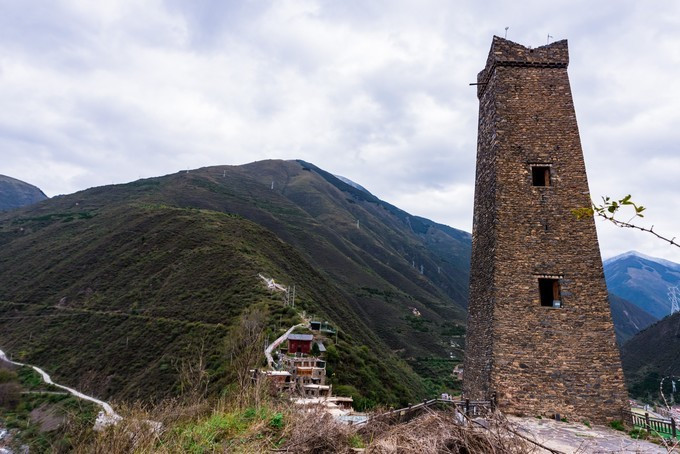 柯盘天街由松岗土司官寨遗址、2座官邸碉、37幢嘉绒民居和1座川主寺庙组成。