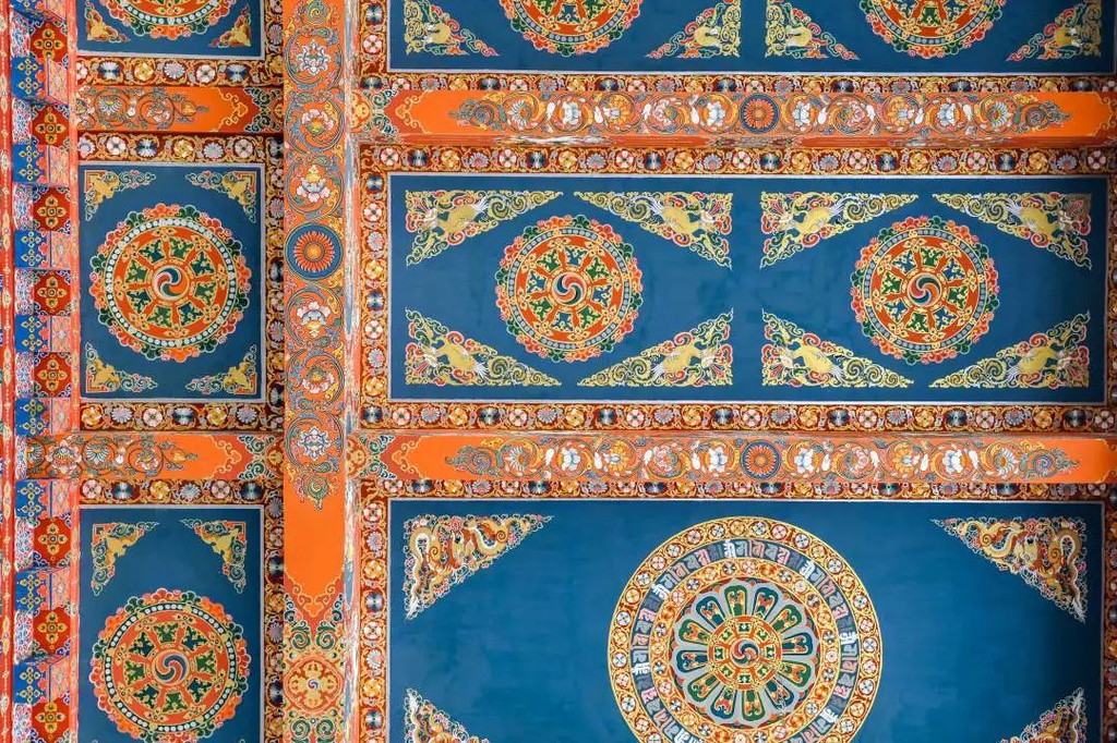 殿内,抬头仰望穹顶五彩斑斓的坛城,
