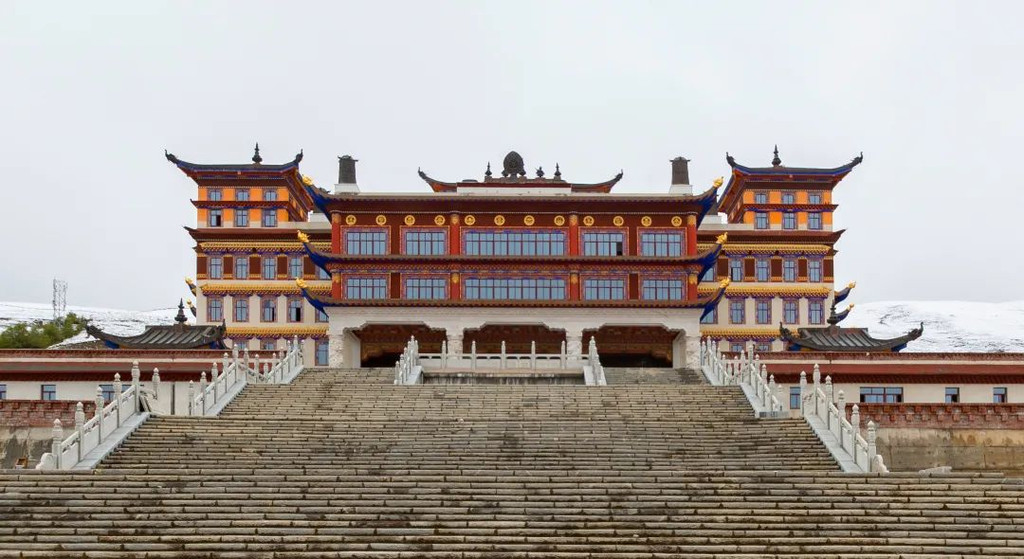在距离马尔康约18公里,三千米以上的高山之中,在四周雪山尖耸、白云祥霭之中,坐落着一座恢弘的寺庙;
