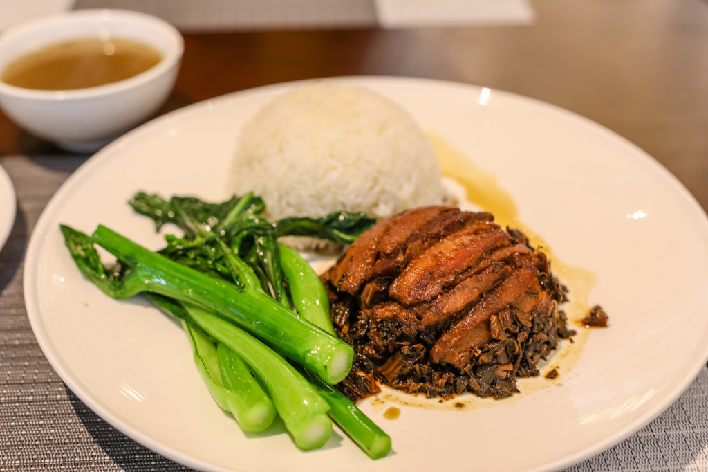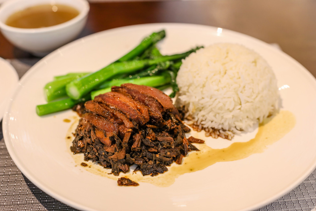 这次选择了这里的简餐,梅菜扣肉是有名的客家菜,经过腌制的梅菜带着咸味和甘香的味道,特别下饭。加上肥瘦相间的五花肉一起烹制,梅菜的香味渗入到五花肉中,让五花肉也带上了梅菜甘香的口感,下饭最是合适。
