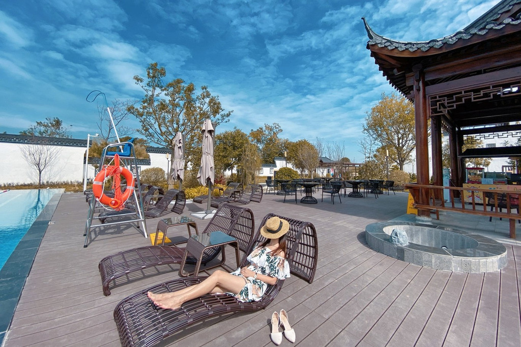 露天的公共温泉区同样用了 江南 园林风格的设计,各种古风回廊穿插其中,假山流水点缀在各个造型别致的温泉中,让整个温泉有如 江南 园林,泉水潺潺,雕梁画柱, 大方 优雅。