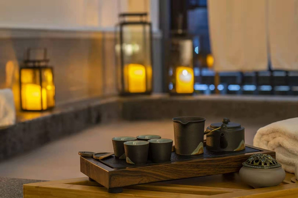 房间的洗浴用品用的都是知名品牌的产品,除了可以放心使用,同时也能给皮肤和身体更好的呵护。私人泡池也准备了药材包、浴盐等可以放入到温泉池中,让药材的成分随着温泉水进入到身体,对身体更是大有裨益。甚至温泉池还贴心地摆放了木架,摆放了矿泉水,让身体可以快速补充在泡温泉的时候流失的水分哦。