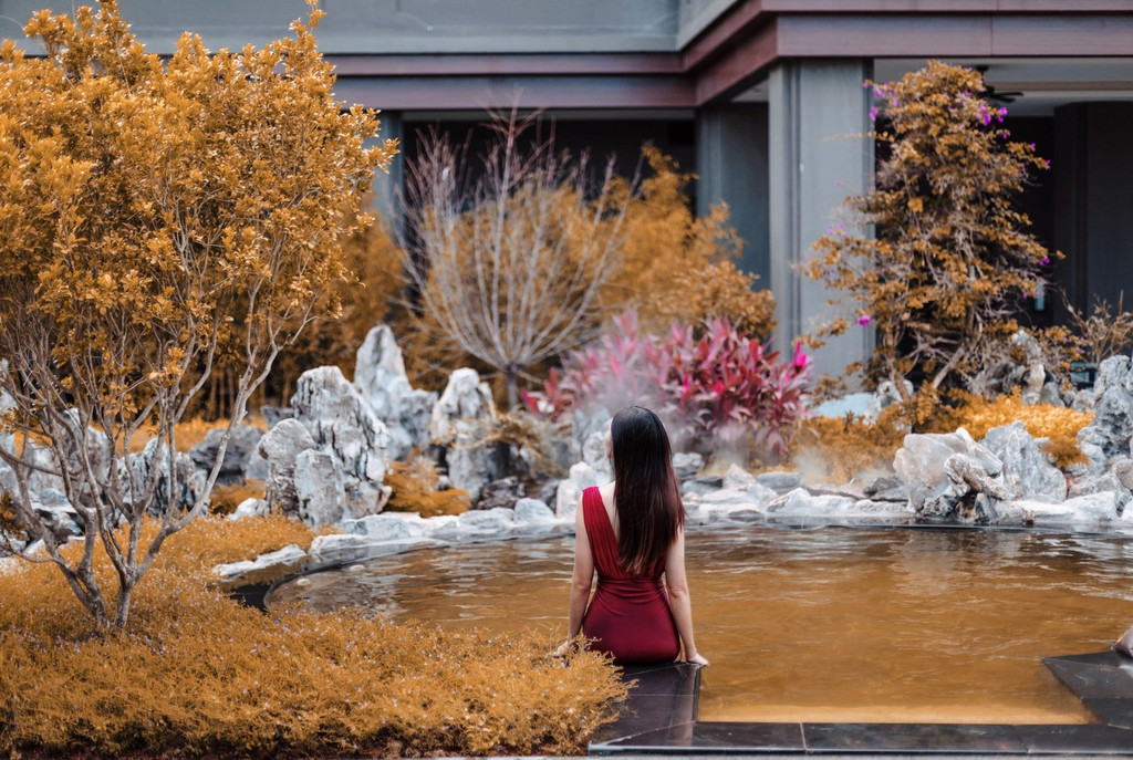 这里的温泉池设计颇为别致,有不少的温泉都用了 江南 美景作为设计的主题,泡在池水中,看着池边那些精致的雕塑,总有一种非常奇妙的感觉。