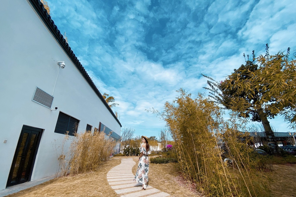 梅州 玖崇湖凤颐酒店用了 江南 园林风格设计,走入酒店,很有一种温婉的味道。在 兴宁 的蓝天白云下,苏式园林更显清新而细腻。
