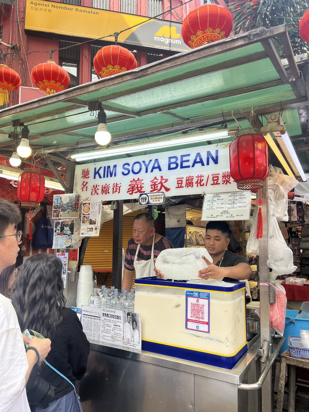 然而,首先映入眼帘的是一大堆摊档,卖的是形形色色的假包假鞋和假表,摊主基本上黑人居多,好奇问问价格,直接可以从200rm降到10rm,相当恐怖,吓得我们撒腿就跑……当然,卖吃的很多都是华人同胞,福建的潮汕的陕西的来自五湖四海都有,由于早餐吃得实在太饱,所以没机会尝试太多,只记得豆浆不错,番薯蛋还行,椰青很便宜。