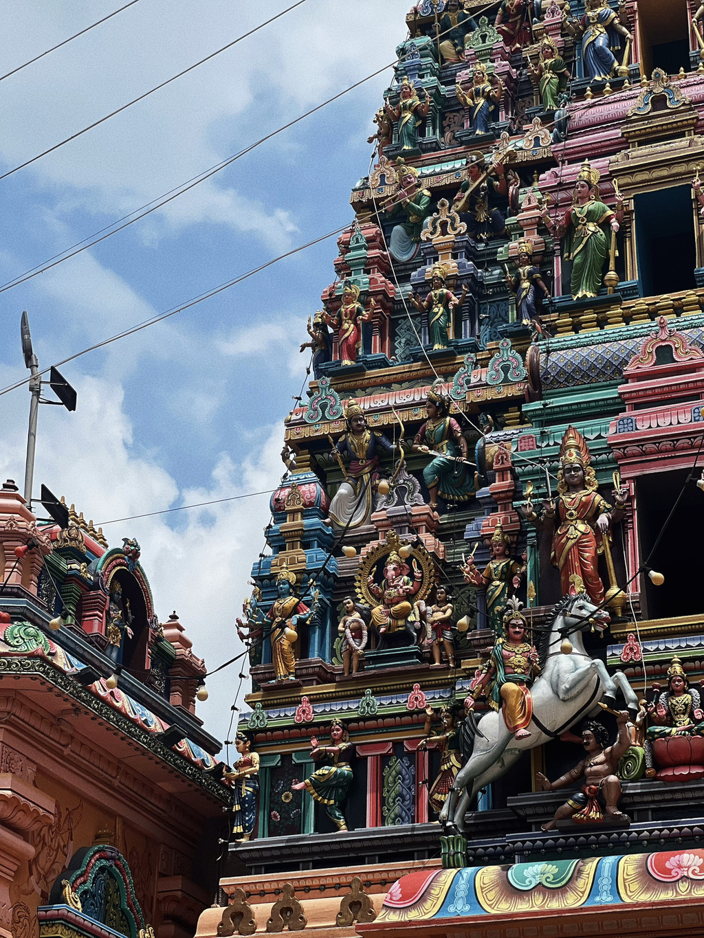 茨厂街附近有一个非常好看的印度庙以及一些华人会馆,印度庙脱鞋即可入内参观,我们还碰巧遇到了教徒在做点灯仪式,现场真人演奏的音乐非常带感,对于别人的信仰,我们尊重,看看就好。印度教的建筑色彩非常明艳且充满多巴胺,人像们都载歌载舞的,虽然读不懂含义,但从艺术角度去欣赏还是觉得非常有特色,而且莫名有种神秘的色彩。