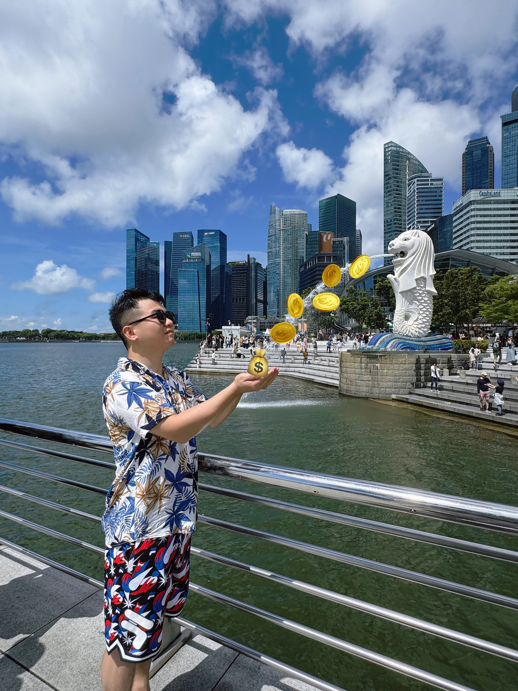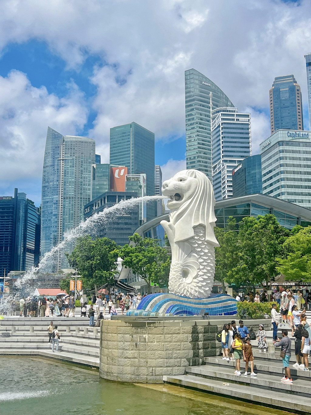 第一站是鱼尾狮公园——对,就是在这里,我们才算是真真切切地感受到狮城的美:这是一种国际化、现代化与绿化的完美结合,对岸的金沙城与鱼尾狮隔岸相望、相得益彰,在这种阳光与开阔之下,整个人都发自内心地神清气爽。兴奋之余不忘拍下接鱼尾狮喷水的照片,希望财源滚滚来~