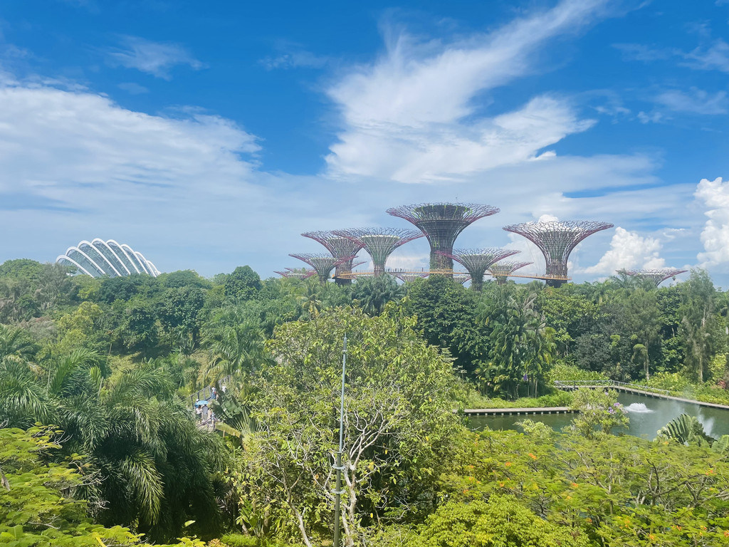 如果说上午在鱼尾狮公园感受到了新加坡的国际现代都市魅力,那么接下来在金沙后面的滨海湾花园式真的刷新了我对花园城市的理解:仿佛走进了阿凡达的世界,又有点迷失在绿野仙踪的感觉,一座城市里,怎么能拥有一片如此好看的森林?时间有限,我们没办法进入内部的空中栈道一探究竟,但这种冲击力直到现在还是让我记忆尤新,花园城市,新加坡真的是赢麻了。