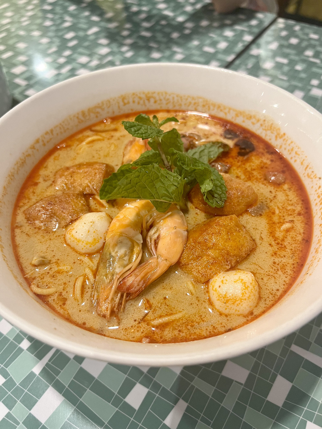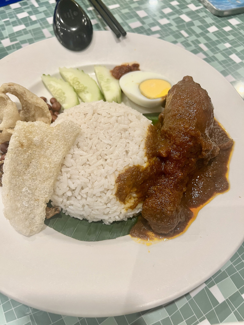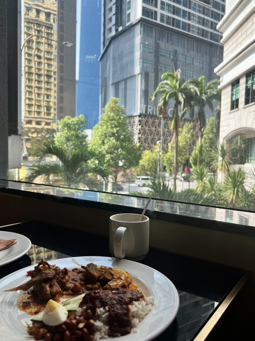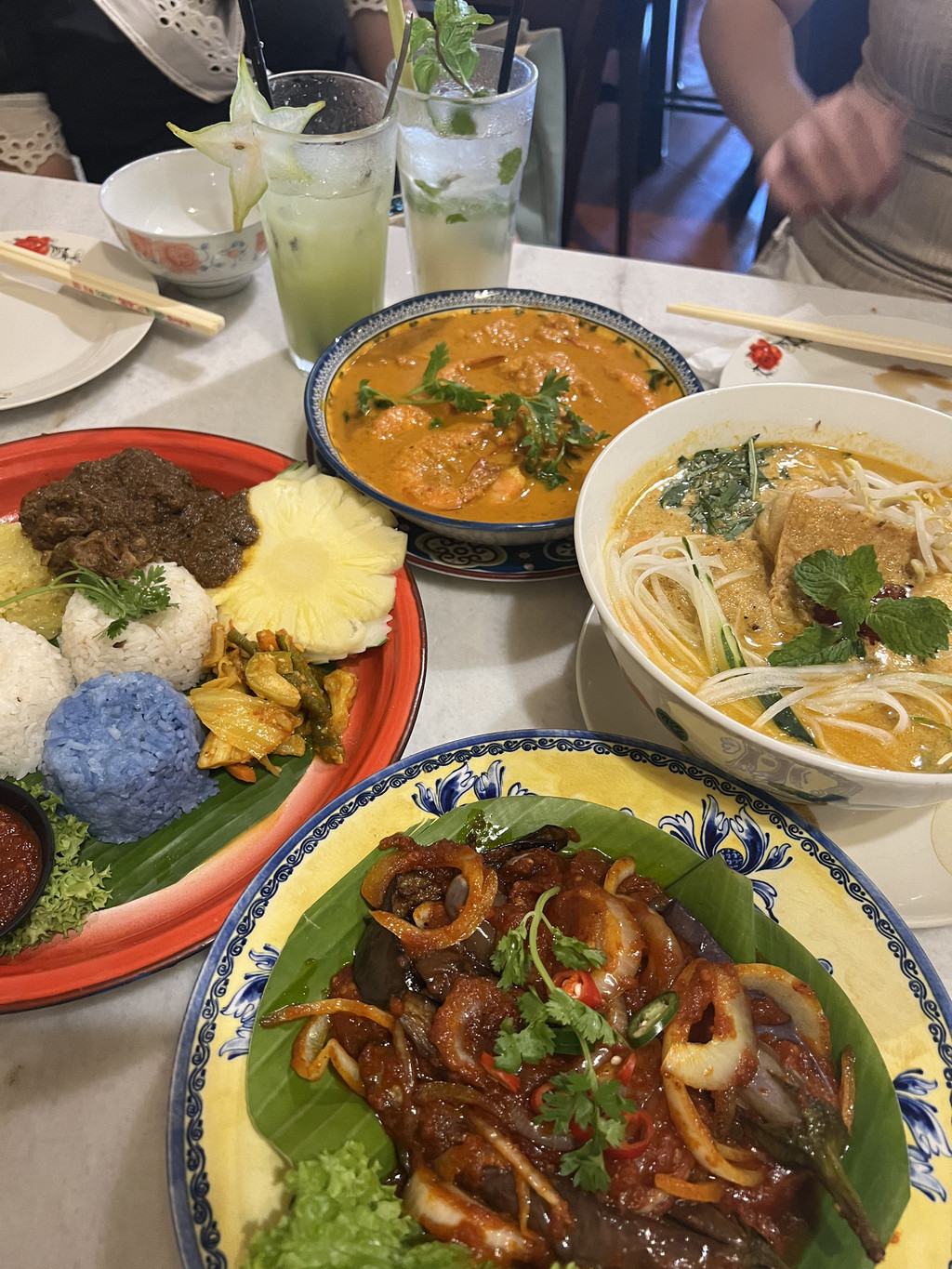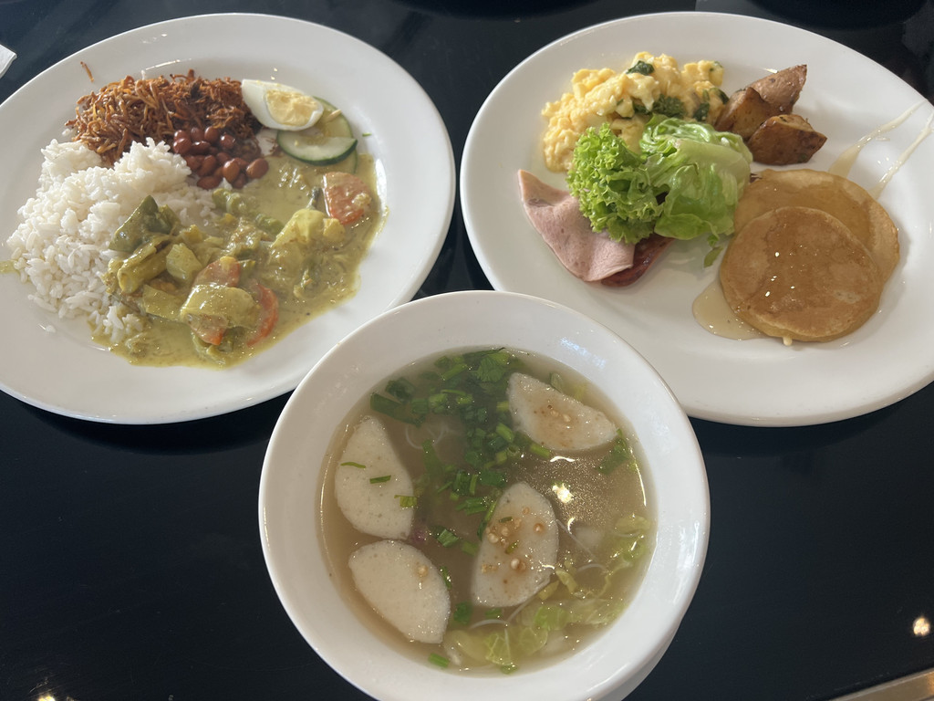 KLCC楼下有个商场,四楼有两家当地连锁的网红餐饮品牌,已经饿疯了的我们选择了小槟城餐厅入座。招牌的椰浆饭搭配酱汁很不错,马来西亚真的是个很下饭的国家,各种奇奇怪怪的酱都各有特色,就是拿来配饭吃的,甚至酒店的自助早餐都在提供;叻沙的颜色艳丽,看着就很开胃,汤很鲜,浓郁咸香,潮汕人民应该完全接受无结界;海鲜炒粿条真的是锅气十足啊,一道普普通通的碳水把卡路里安排得明明白白;沙爹肉串出乎意料有着浓浓的姜味,搭配起来还挺不错的,但是没有特别惊艳。这顿饭性价比还可以,主打一个地理位置佳就餐环境好,毕竟商场一楼的premium洗手间是要收费的。