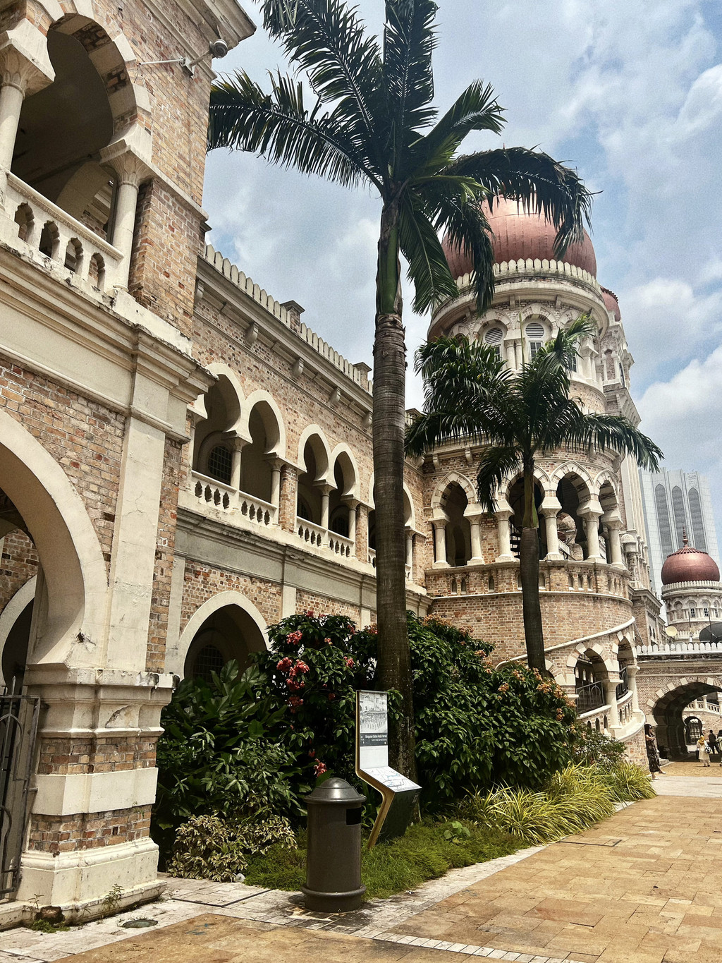 五月份的马来西亚,体感温度能达到35℃左右,我们正午时分勇闯独立广场也真的是很猛。但是既然来了吉隆坡,这个地方再晒也得打卡一下,毕竟这里是世界上最大的广场之一,还有着全世界最高的旗杆,热就热吧!之前在韩国的德寿宫里面看到的石造殿,神似美国白宫,不得不说把白宫搬入韩宫是有一点生硬的——同样是殖民文化,苏丹阿都沙末大厦有着独特的摩尔式建筑风格,混合了基督教和伊斯兰教文化,成为吉隆坡一道亮丽的建筑风景线。