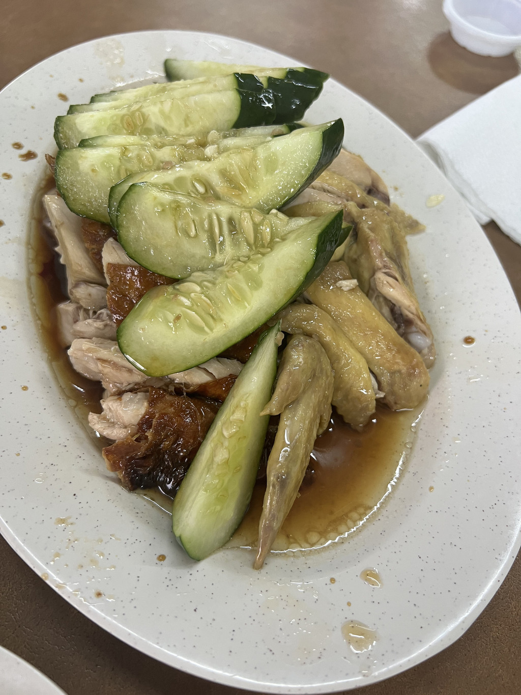 马六甲还没有细细玩够,就得去新加坡了,马来西亚去新加坡加上入关时间要大概6个小时,路程较远且容易塞车。马六甲唯一能留给我们的念想就是最后一顿早餐,司机小哥待我们去吃了一顿正宗的海南鸡饭,虽然我也不知道海南鸡为什么风靡新马,但这里的海南鸡饭粒和鸡肉真的很很很好吃,鸡肉嫩滑酱汁独特,饭粒油香满溢,淡淡的咸味让人一口一个停不下来,四个人吃一只鸡一顿下来埋单不到人民币100块钱,便宜到偷笑。