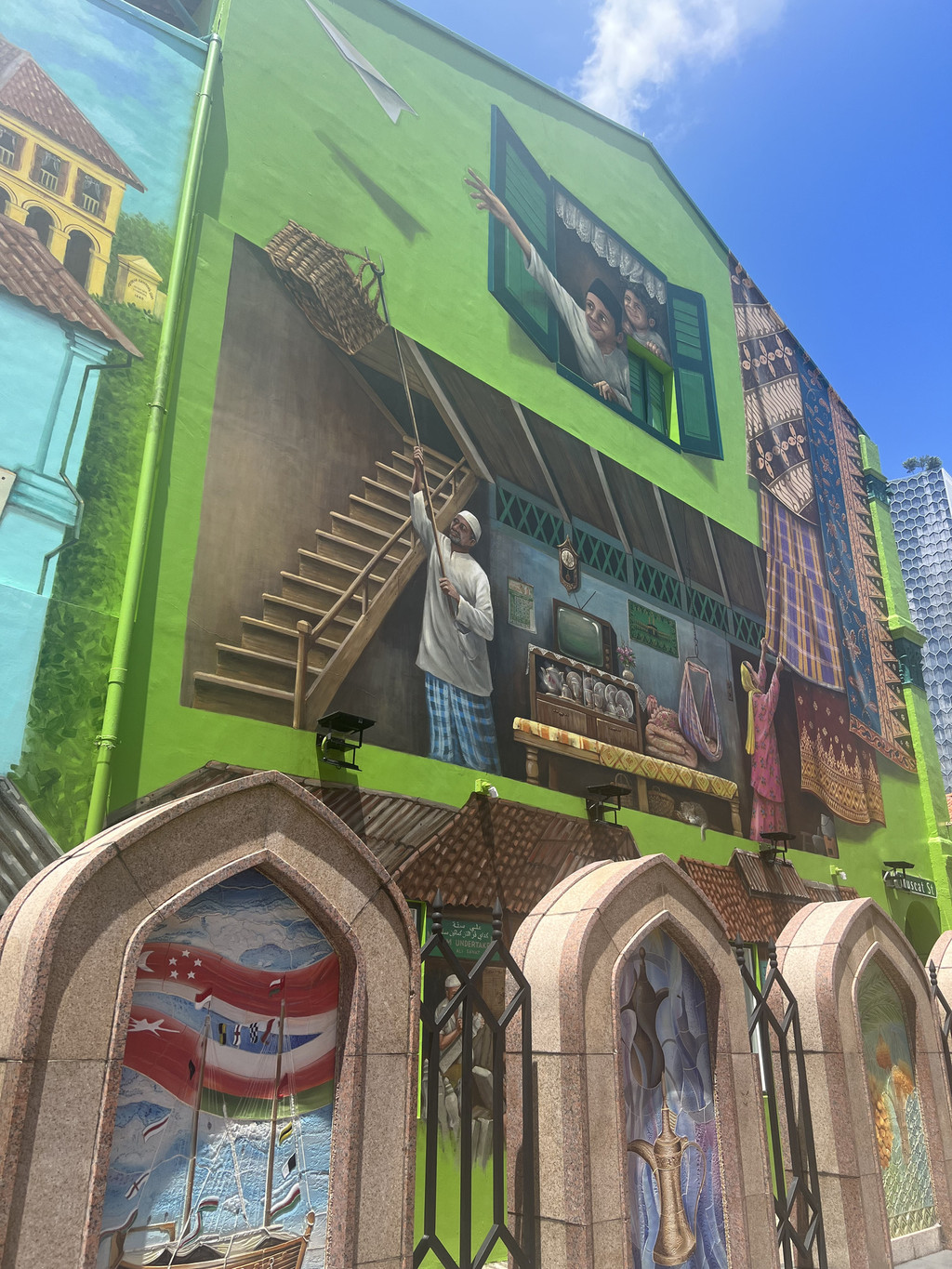 接着我们来到哈芝巷,这里应该是新加坡中文覆盖比较低的区域,更多的是印度人,而且地标就是苏丹回教堂,阿拉伯气息相当浓郁。除了有特色的印度小店,两边房子墙上的涂鸦也非常引人注目,直接带动了整条街的氛围感。来到新加坡我还有一个很重大的感受就是——这个城市实在是太干净了,很多地方你一看就知道它有那么些年头了,但依然能被维护得很好;无论是大街还是小巷,地面的洁净程度都是令人佩服的,且绝对没有异味,在去过那么多国际大都会之后,这一点我敢说,新加坡是当之无愧的NO.1,也不枉“世界上城市基建设施最好的城市”这个名号。