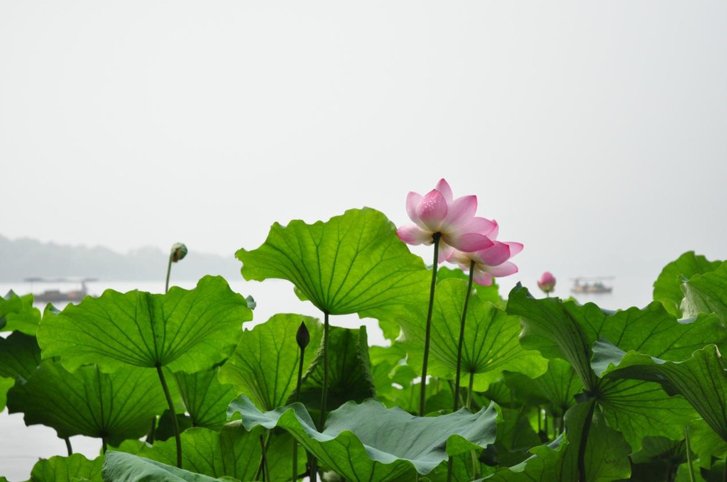 6月中旬,我去了杭州。南宋诗人杨万里有诗道:毕竟西湖六月中,风光不与四时同。接天莲叶无穷碧,映日荷花别样红。所以去杭州的主要目的就是去西湖赏荷花。西湖很大,水天相接的湖面上,游荡着许多游船。我沿着湖堤来到满眼碧绿的荷花池,池中的荷花真是千姿百态,有的还是骨朵儿,饱满得马上要裂开似的,有的才展开两三瓣儿,有的全绽放了,那粉红的颜色,像小姑娘脸上害羞的红晕......看得我眼睛应接不暇。