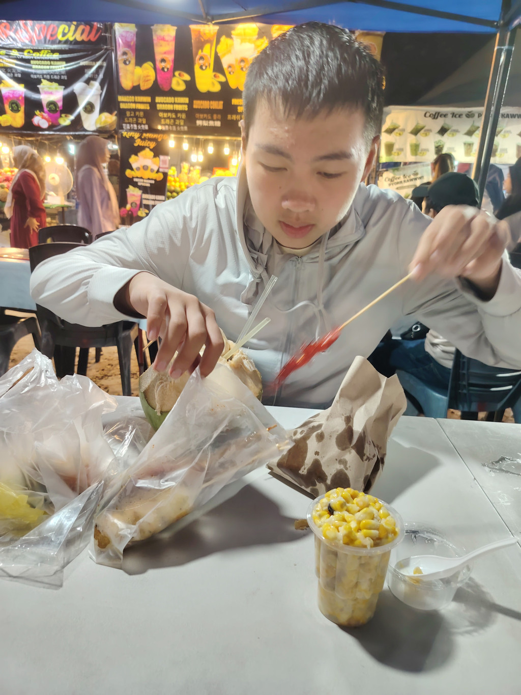 一顿酒足饭饱后又在水果摊10马币买了超级甜的菠萝,其实去大马应该可劲儿吃榴莲,既物美又价廉,可惜儿子不接受我也不大喜欢。晚上儿子不知是水土不服还是晚餐吃的太多太快吐了几次,真是把我吓坏了,赶紧喂了藿香正气滴丸和胃肠安(这两种药还有发烧药一定要带),小镇没有医院,药店也不多,好在儿子只是吐了并没有发烧和其他症状,我一夜未眠想着各种应对办法,还算有惊无险儿子后半夜无恙。想着不行转天就放弃休闲钓看情况再行动,没想到第二天早上儿子满血复活,海钓是他来这最重要的目的所以没有任何犹豫必须出发!