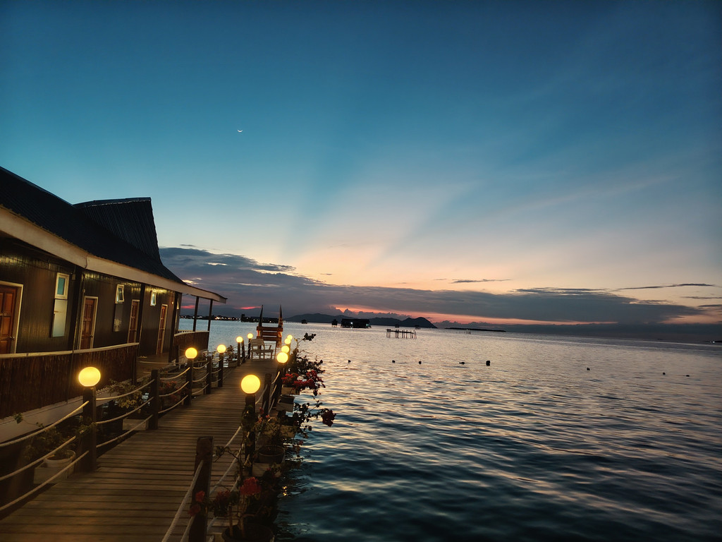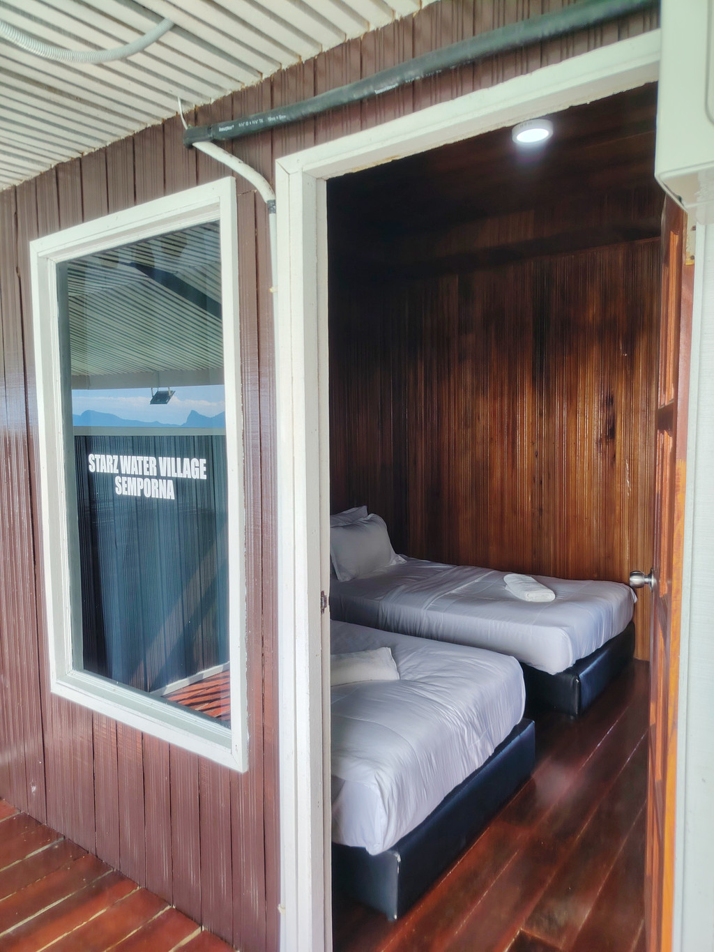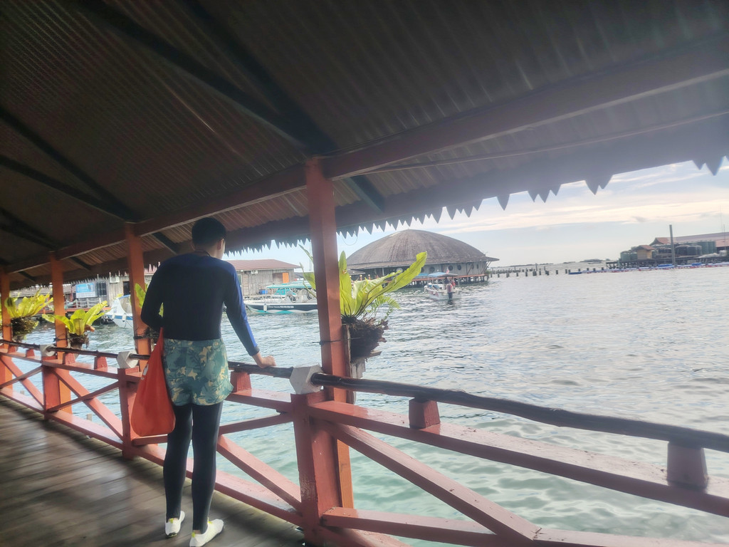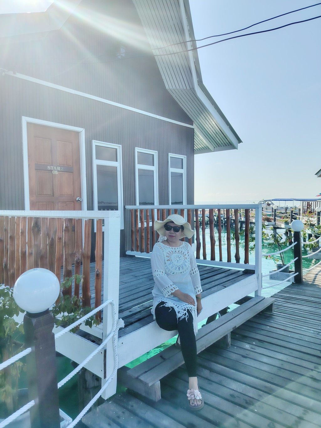 大概40分钟后我们到达美丽的水屋,上岛费20马币(2人),在仙本那有许多水屋,价格大都在千元以上,网红水屋超万,星星美亚是性价比最高的,我定的早,是700元两天一晚,所有水屋都管三餐,虽然不太好但因为是独立在海上所有的淡水和食物都要从小镇海运过来也是非常珍贵,我们住的是连体别墅,其实也就配得上是连体小木屋,房间不大但海真是美翻了,像水晶似的晶莹剔透,超多的小鱼高兴地欢迎着我们,岛上每个时间都有免费或付费项目,我们预定了下午3点半的免费浮潜和晚上8点出发的付费夜钓(50马币1人)。