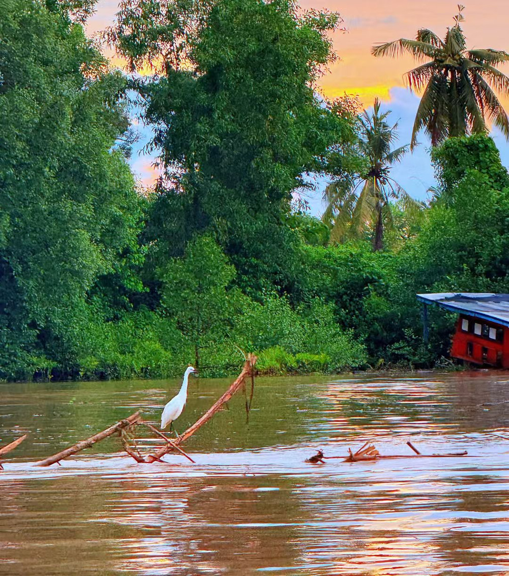 路程需要开1个半小时左右,在盘山路上我们的车坏了,导游立刻联系和我们同行的其他车辆,沟通后可以从我们车上转去四人,这时坐在最后面的两个小姐姐毫不犹豫地申请离开,中间的两个也不甘示弱地抛弃了我们,没有空调被抛锚在山路上并不可怕,让我愤怒的是几个小姐姐在遇到困难时丝毫没有同国同胞要互相关照的意识,自顾自地无耻逃跑,连司机和地导都向我投来同情的目光,我知道他们不是因为车坏了而同情我和儿子,而是为同是中国人而毫无人性可言小看中国,一时间我真是太生气了,瞬间玩儿兴全无,和客服联系尽快回酒店。由于我们导游和游客不全四个小姐姐即便早到了红树林依然只能原地等我们,她们居然还无耻地来电询问导游什么时候可以到,这应该就是所谓的现世现报吧,我突然感到了一丝的痛快。客服也一直帮我们联系当地旅游公司,大概15分钟后公司又派了一辆车接上我们,到了红树林基地才知道,那里没有空调大厅几个小姐姐只能在河边的简易大棚里等我们,又热又潮湿还有蚊子爱着,真是可怜至极(心里暗爽)!我们一船16人同行在红树林的原始河道幸运地看见了成群的马来长鼻猴、猕猴和泽巨蜥,听导游说再幸运些还可以看见大嘴鸟和湾鳄,红树林幽深而神秘令人忍不住无限遐想。