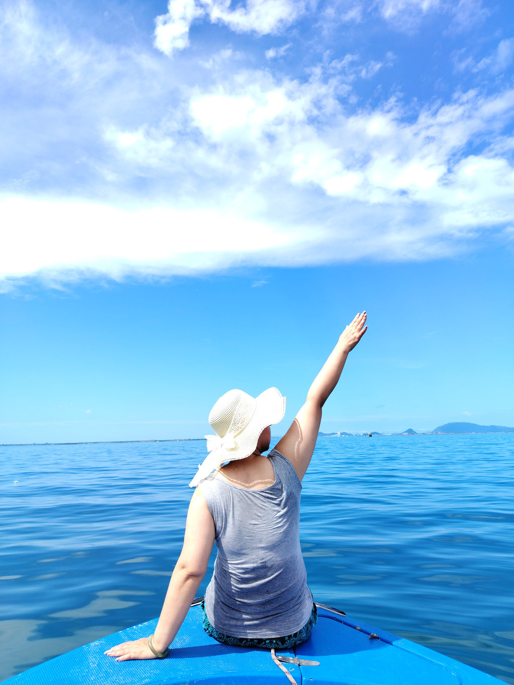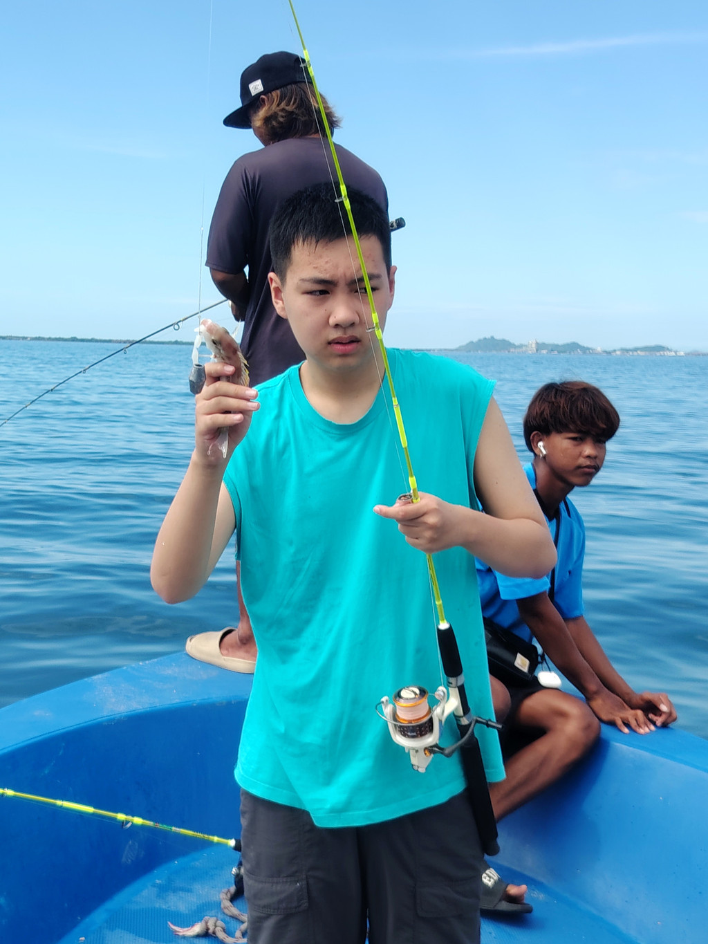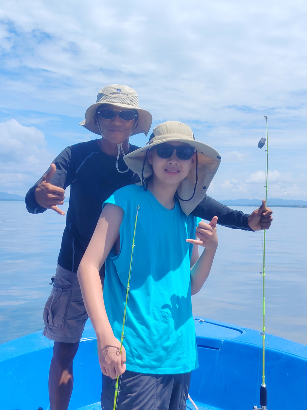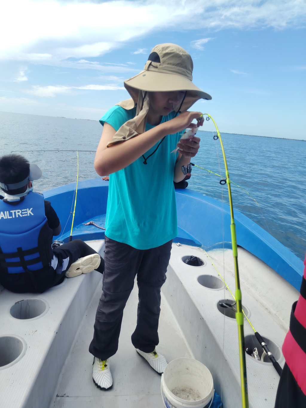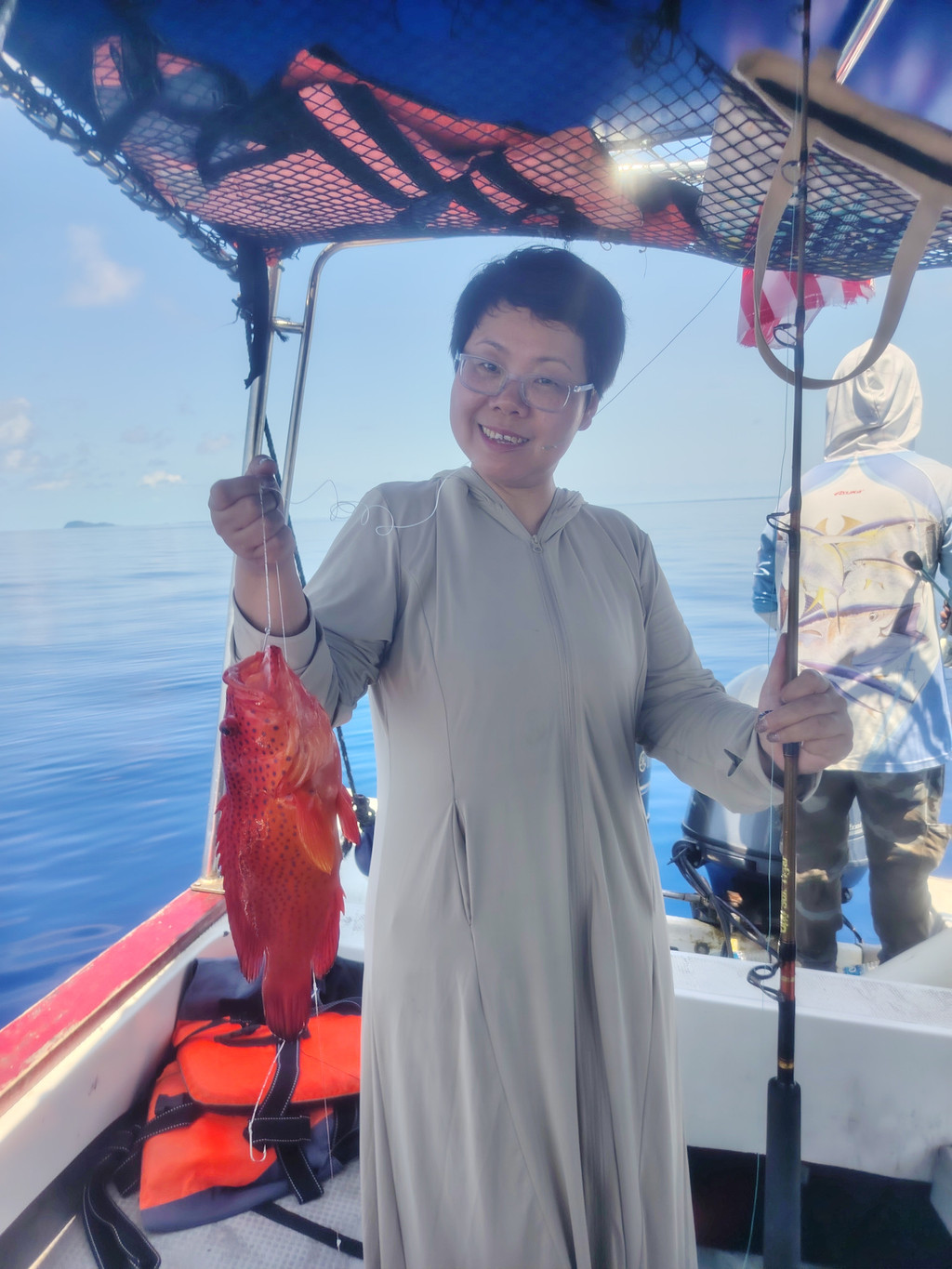 第三天,休闲海钓+水屋——按照晚秋的提示我们来到海钓中心,我们的酒店后面就是海钓中心和潜水中心真是太方便了,早餐后我又问了儿子身体情况确认无恙后吃过晕船药和藿香正气滴丸和北京来的一家六口乘船出发,开了大概40分钟儿子开始最爱的体验,我和三个阿姨让小黑哥帮忙照了许多美照。