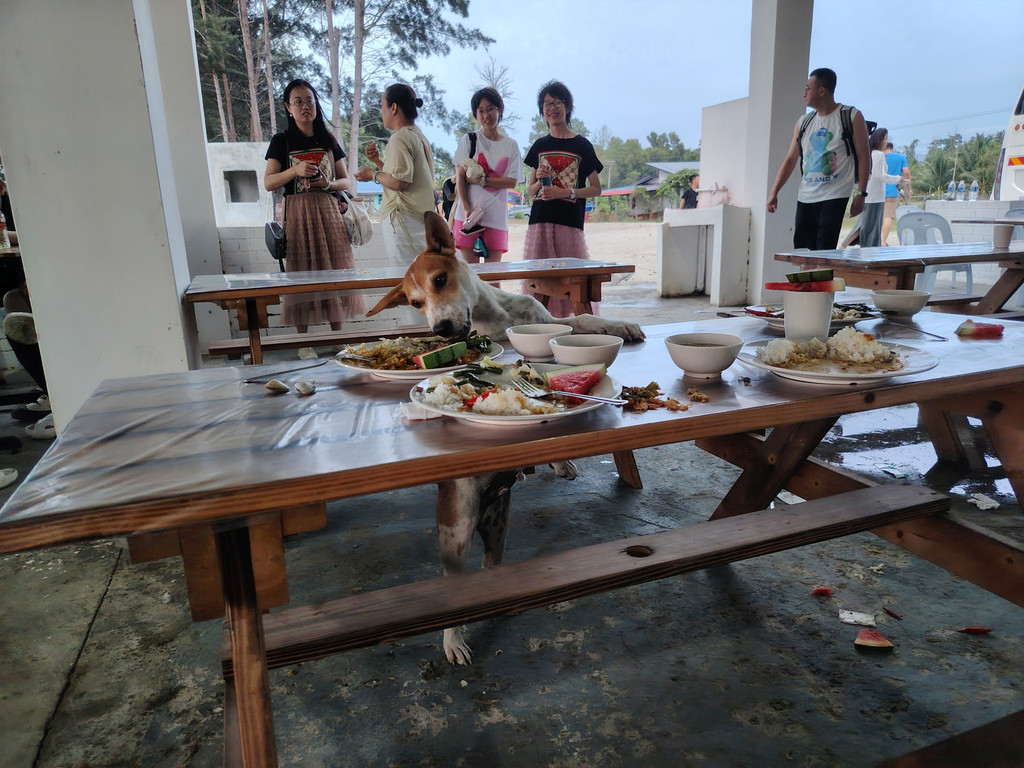第三站是下午5点我们驱车来到一个私人沙滩吃简餐,导游们在开餐前已经嘱咐给大家不要把剩余食物留在桌子上,因为会有好多流浪狗来吃剩饭,当地的狗不会主动伤人,只要大家不主动喂,不把剩饭留在桌子上就可以和狗狗和平相处。饭后大家可以欣赏落日在私人海滩上玩儿,但偏偏就有听不懂人话的游客把剩饭留在桌子上,一时间四五条狗争先恐后地抢食,狗们贪婪地舔着我们的餐盘让我看后一阵阵的反胃,想想自己刚刚使用的也许就是被狗子们舔过的盘子,后悔上一秒还津津有味的吃着饭。更不可思议的是那几个没收餐盘的姐姐和孩子们还兴高采烈地欣赏着狗们争抢食物,这不到半天的时间让我看了太多中国“素质”,真是伤心!