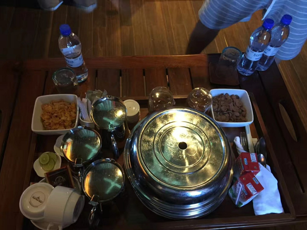 昨天玩得太累,想睡晚一点(没哪天是不累的😂)所以通过信箱点了第二天的早餐。讲真,小黑真的很准时,跟你预订的时间一样。这个时候小费就不能免得了(因为我们是第一次去小费国家不怎么知道什么时候要给不要给,所以50零钱没几天就快给光了😭看来以后再去需要给小费的地方要悠着点给才行)。