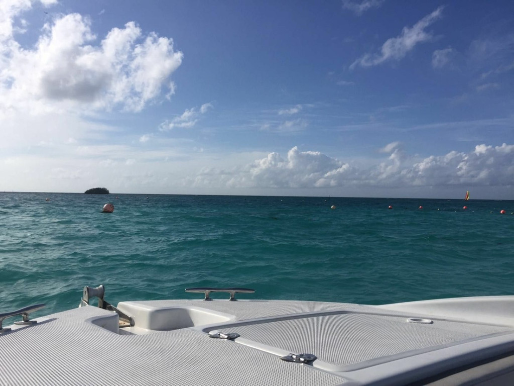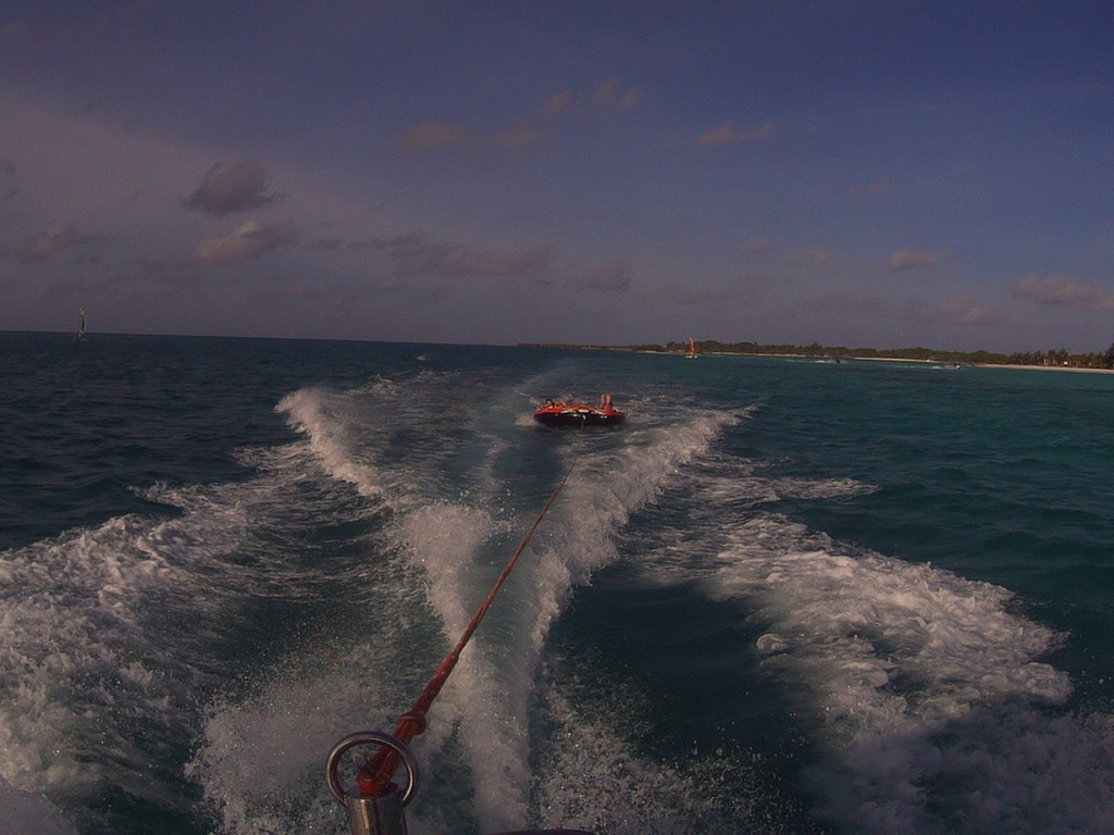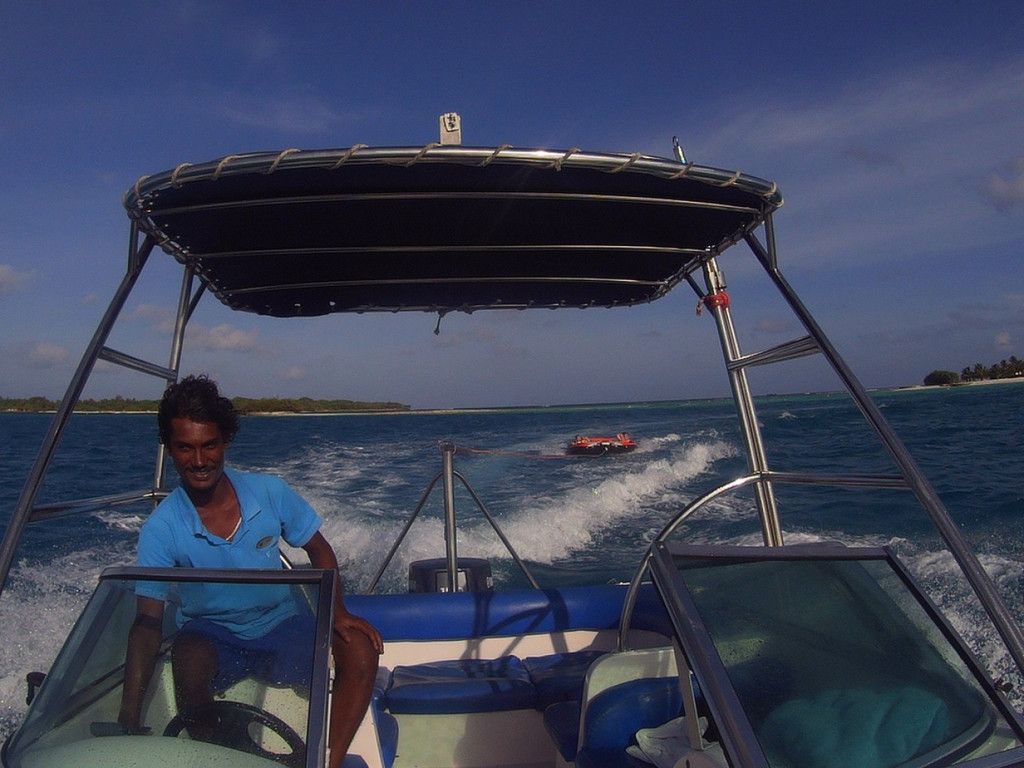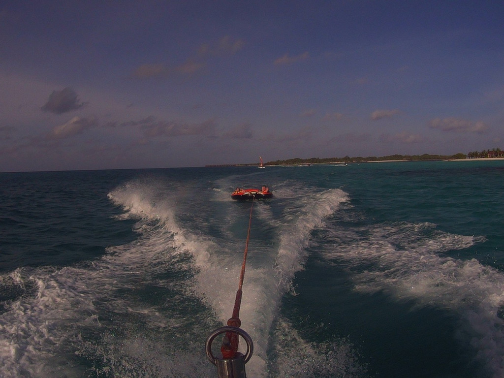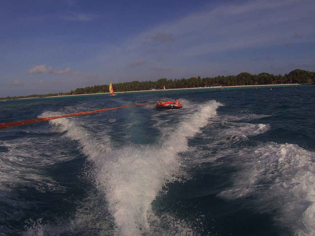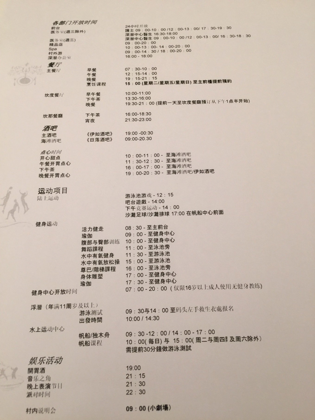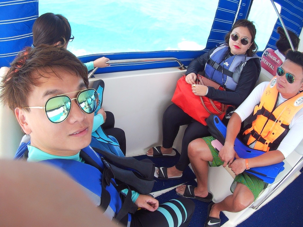 在听完海上活动介绍之后就决定自费参加了海陆空双人套餐!(蓝色海洋发现之旅+香蕉船+滑翔伞)岛上的G.O很有耐心地给我们介绍有哪些好玩的项目还很细心地帮我们安排行程,因为我们第四天要拍婚纱照,老公又不想最后一天湿身,所以只能把活动 都安 排在第二和第五天了。