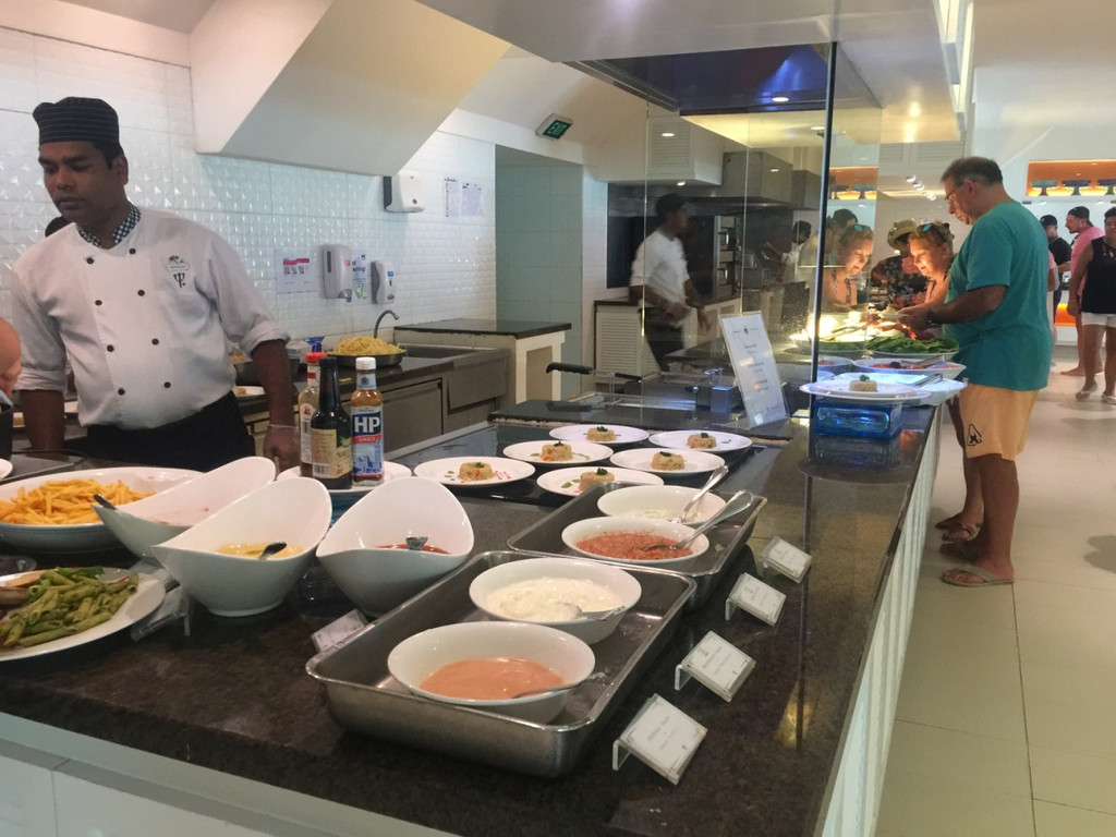 我们去到坎度餐厅的时候没什么人,就挑了张靠近海边的桌子坐下了。餐厅的环境真的很浪漫,不过出品就不敢恭维了,就 连平 常不太挑食的老公也喝不下那盘不知名的鱼汤。最后我们连甜品都没吃就溜回去主餐厅了😂